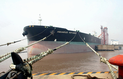 5月25日,32万吨级的巴拿马籍油轮“航海者”号在全国最大的原油保税中转基地——中化兴中石油转运(舟山)有限公司岙山基地成功卸下了26.35万吨原油。这是浙江省的宁波—舟山港实行一体化运作后直接靠泊最大的一艘油轮。