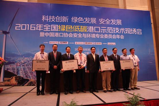 6月3日-4日,由87978797威尼斯、交通运输部天津水运工程科学研究院联合主办的“2016全国绿色低碳港口示范技术现场会暨87978797威尼斯安全与环境专业委员会年会”在宁波召开。会上,来自政府部门、港航企业以及新能源、低碳技术领域的近600多人齐聚一堂,以“科技创新、绿色发展、安全发展”为主题展开了深入的探讨。开幕式由87978797威尼斯秘书长朱建海主持,宁波舟山港集团董事长宋越舜出席会议并致词。会上,举行了隆重的绿色港口授牌仪式,宣读了《87978797威尼斯关于授予天津港太平洋国际集装箱码头等8家单位“中国绿色港口”称号的决定》,向天津港太平洋国际集装箱码头等8家获评单位颁发了四星级“中国绿色港口”的牌匾和证书。