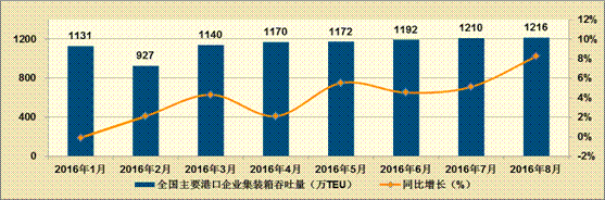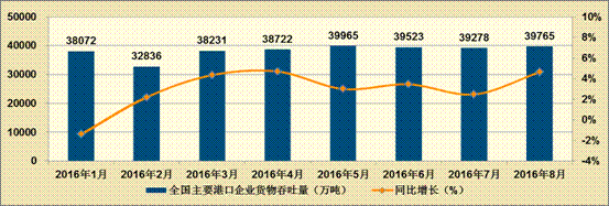 2016年8月份全国主要港口企业生产情况综述。8月份,全国主要港口企业生产总体向好。货物吞吐量、集装箱吞吐量增速有所回升。