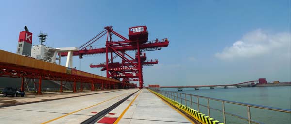 本报讯 3月9日,国家交通运输部组织召开的青岛港董家口港区青岛港集团矿石码头工程竣工验收会在青岛举行。经过与会专家领导一致同意,青岛港董家口港区矿石接卸码头工程正式通过国家验收。这是目前世界最大的矿石接卸码头,也是我国建成的第一个30万吨级(结构兼顾40万吨)矿石接卸码头,创出了五个世界之最:世界最大的码头、最深的码头水深、最先进的环保系统、最先进的信息化操作系统、最大的岸桥。