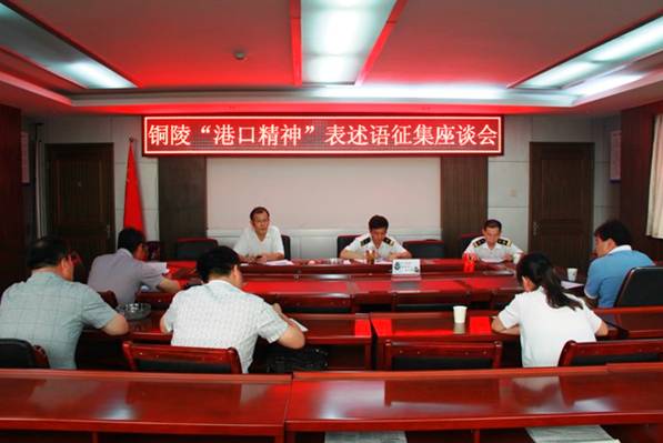本次座谈会是在前期征集16条表述语基础上召开的,目的是充分发挥关注港口、热爱港口各界人士的智慧和才智,通过多种形式来进一步提炼和深化,产生符合铜陵港口实际、特点、发展的,具有很强港口特色,形象生动而富有感召力,激发铜陵港人热爱港口、关注港口、发展港口之正能量,实现“城以港兴,港为城用”的铜陵港口精神。