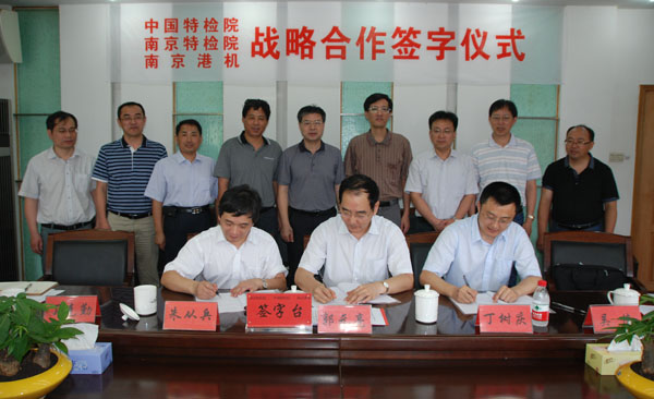 2013年7月12日上午,南京港口机械厂与中国特种设备检测研究院、南京市特种设备安全监督检验研究院在港机厂举行三方战略合作协议签字仪式,拉开了“强强联合,共谋发展”的序幕。南京市质量技术监督局副局长王建强、南京港集团副总经理杨联宏等出席签字仪式。