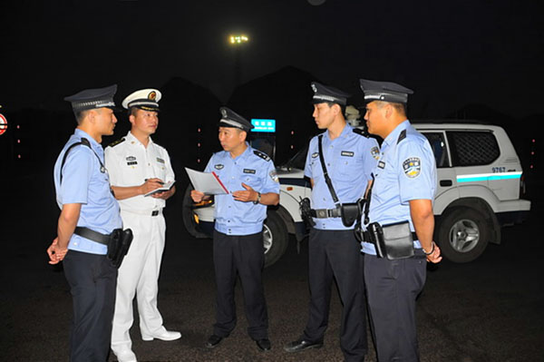 为检验军警联合处置突发事件能力,提高军警联合处置突发事件水平,加强工作协调,密切军警双方关系,近日,青岛港公安局大港派出所与驻港海军某部联合开展处置突发性事件演练。