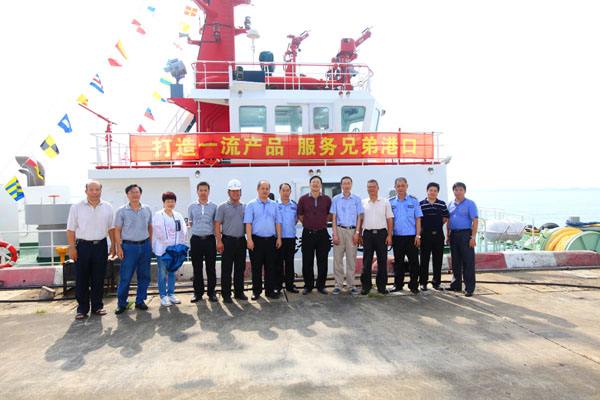 集团领导劳毅、林聪到现场指导“湛港消拖601”号试航。