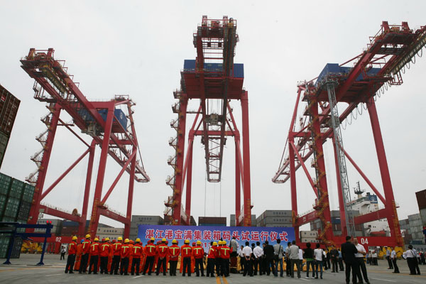 随着湛江经济五年崛起,预计至2016年,湛江港可接卸集装箱将达110万标准箱。湛江港宝满集装箱码头的建成投产,将进一步提高湛江港集装箱码头的核心竞争力,进一步促进湛江港功能布局的优化和集装箱航线网络的完善,进一步推动湛江临港产业经济和临港物流链的繁荣发展,共同推动湛江经济乃至区域经济的新一轮腾飞!