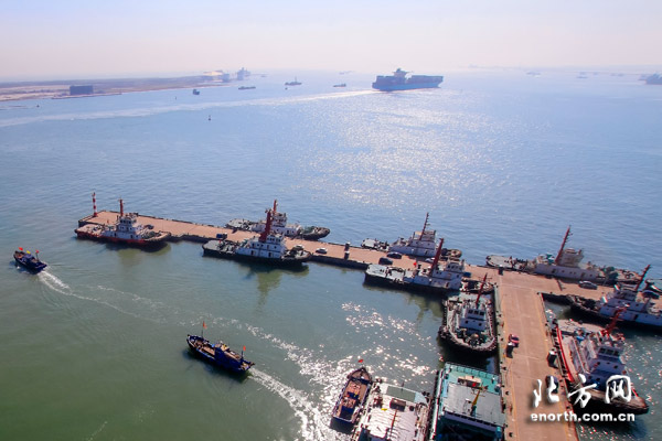 据了解,复式航道投入使用后,将使现有主航道拓宽至420米,两侧各增加一条万吨级航行航道,从而实现高等级大型船舶和小型船舶分流,满足25 万吨级邮轮与10万吨级集装箱船舶双向航行;浚深口门内北侧335米范围内水深达15.5米,使北航道与主航道交叉口通航水域宽度增加至765米;口门外主航道两侧各建设1条100米宽的小船航道,为占天津港船舶总数约70%的小型船舶提供专用航道,最终形成了天津港复式航道,属国内首创。形成的“双进双出”四通道航行,将进一步降低原有主航道航行密度,避免进出港船舶交叉航行,极大提高通航能力,全面提升天津港口的综合实力。
