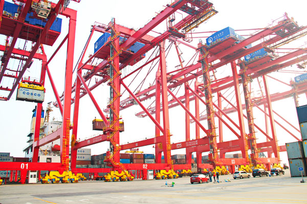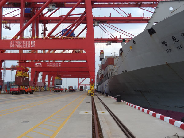 繁忙的湛江港之宝满集装箱码头