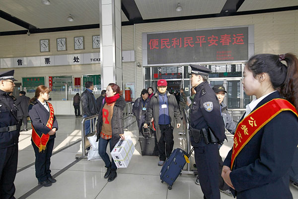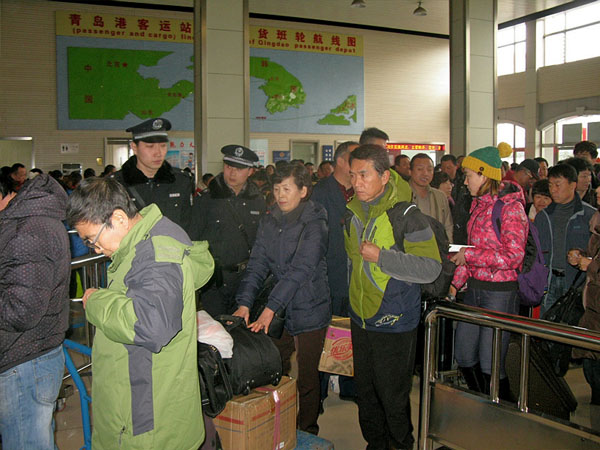 为切实做好2014年春运安保工作,青岛港公安局大港派出所紧密结合“便民、利民、平安春运”工作要求,采取四项措施全力确保海上春运圆满结束。一是充分利用客运大厅电子显示屏游走字幕安全提醒告知,并利用公安局服务大厅平台群发提示短信。二是合理调整增派警力,严格落实勤务制度,严密客运防火、防盗、防爆、防破坏措施,严防发生旅客财物被盗、被抢、被骗案件,确保中外旅客从青岛港走得安全、走得及时、走得有序、走得满意。三是严密查危防爆措施,利用派出所“二点一线”视频监控,分兵把好旅客进出站广场、候船大厅、过境检票口、旅客接送车、包裹装运和客运码头等重要关口的严控严查严检和秩序疏导。坚决将“三品”查堵在站外,确保中外旅客人身财产安全。四是联合“一关三检”,落实反恐防爆、旅客滞留、意外事故等应急预案,分工严密防线查控,确保一旦发生险情,能够快速反应、协同作战、稳妥处置,确保春运期间安全、有序、畅通。期间,共安全接送日韩国际航班39艘次,旅客8171人,开展搜毒爆56次,探测旅客6540人次,行李11104件,查验护照2486人,通过卓有成效的工作,确保了客轮、旅客的绝对安全,圆满完成了此次海上春运安保任务。