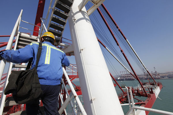 把桥吊当做“患者”,每天为它们巡诊、排障,是青岛前湾集装箱有限责任公司工程技术部固机三期主任指导员朱成全的日常工作。