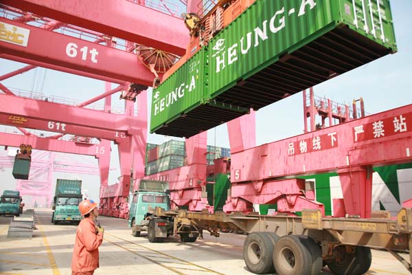 今年一季度,在航运市场持续低迷的形势下,连云港港以上量增效为主线,加大力度进行市场开发,科学周密组织生产,统一调配全港生产资源,使港口生产逆势而上。新年伊始,港口货源形势严峻,港际竞争激烈;由于铁路运输费率调整,港口竞争劣势加大,开发难度相当大;港口泊位能力提升,但配套能力未能同步,呈现出“码头闲、场地满,上量不增效、市场开发难”的不利局面。以红土镍矿为代表的港口重点货种,在延续了去年底的“疯狂”之后,在2月份出现拐点,市场急转直下,大宗散货进口量迅速减少,货源短缺的矛盾凸显。针对这一情况,港口一方面努力强化市场开发质量。进一步明确主体责任和主攻方向,主动加大市场开发力度;及时了解港际竞争动态,及时应对。并成立专门的铁矿石市场开发小组,统筹安排重点货种开发工作,取得良好效果。前三个月,港口铁矿石吞吐量净增287万吨,增幅23%,有效地支撑港口吞吐量保持稳定。另一方面,努力提升现场服务水平。统筹整合现有场地资源,扩大堆存能力,争取上量增效同步。同时,结合党的群众路线教育实践活动,港口集团将外货场管理工作纳入教育实践活动立行立改的工作事项中,进一步强化外货场管理工作,出台了《连云港港口集团进出口货物港外分流及外货场管理办法》。