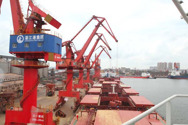 6月25日是第4个“世界海员日”,新中国自行设计和建造的第一座现代化港口——湛江港恰逢开港以来第20万名国际海员到港。当天下午,湛江海事局王建华局长、王争鸣党组书记、湛江港集团张翼董事长、林聪副总裁等来到402#泊位,与巴哈马籍“捷豹”(“JAGUAR MAX”)轮全体船员共同庆祝海员日的到来。