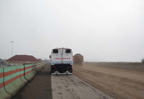 新型工艺方法的实施得力于新型设备的引进。自2009年起,日照港即采用了交大神舟牌“纯吸式扫路车”,该车采用负压纯吸原理,有效清除港口的各类路面垃圾,特别对于传统人工和机械清扫困难的粉尘性垃圾效果显著,侵蚀港口道路路面的沉积垃圾也被一扫而光。