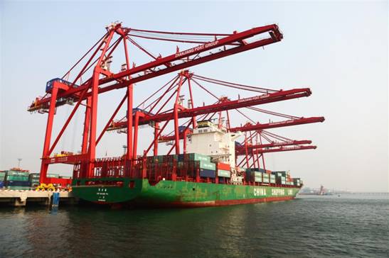 “劳恩堡”轮靠泊411#泊位作业,标志着OOCL“海防-湛江-香港”外贸班轮航线正式开通。