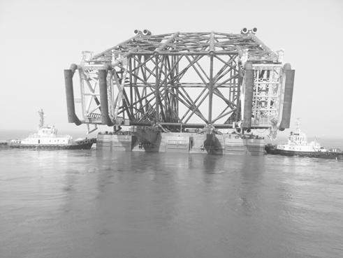 据悉,此次拖带的驳船上装有某钻井平台需要的导管架。由于导管架超大超宽,有的管架探出驳船舷外4米,很容易发生碰撞造成管架和拖轮损伤。导管架物上层建筑高大,受风面积大,也给拖带作业带来很大影响。为此,轮驳公司提前周密组织,认真研究拖带方案,挑选作业经验丰富的船长跟船,并加强与引航员、驳船的沟通。倒拖过程中,派专人船头、船尾瞭望,确保管架、拖轮安全。