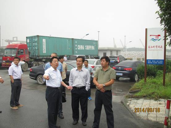9月18日上午,铜陵市市委常委、副市长黄然率队调研港口集装箱发展,市港航管理局局长肖尚俊及市规划局、郊区政府、铜化集团公司等单位负责人陪同调研。