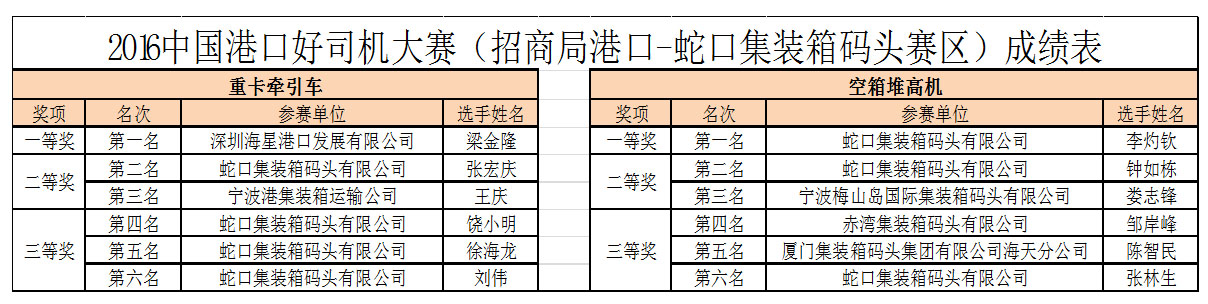 以上选手将代表南方赛区参加9月底在天津港2016中国港口好司机大赛总决赛。
