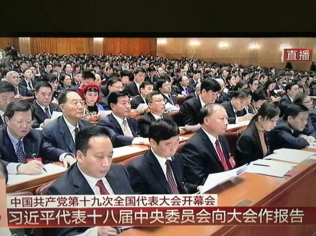 在十九大开幕式上,我认真聆听了习近平同志的工作报告。习近平同志的话特别有力量,特别暖人心,指明了中国的未来道路,说出了咱老百姓的心里话。我完全赞成,坚决拥护。我和代表们按捺不住激动的心情,不停地鼓掌。