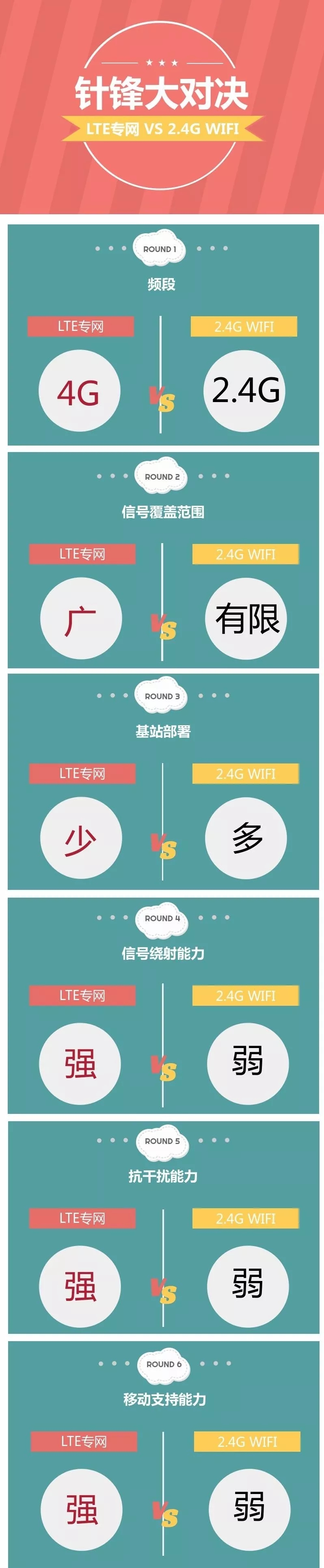 以往,梅山港区集装箱码头相关作业设备终端的信息通讯普遍采用2.4G无线宽带网。由于该网络无线信号覆盖能力有限,导致集卡车辆不能及时接收作业指令,影响码头作业效率。对此,宁波港信息通信有限公司联合宁波梅山岛国际集装箱码头有限公司于今年年初共同推进梅山港区专网系统的提升改造项目。两家公司紧盯港口行业前沿新技术、新工艺,提出并顺利部署了LTE专网系统。下面让我们把4G LTE和2.4G WIFI做个对比,孰优孰劣,一目了然。