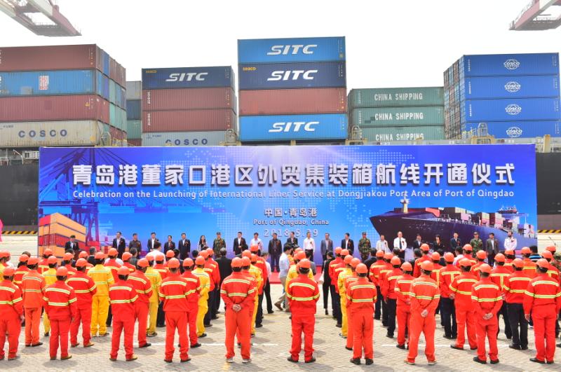 董家口港区集装箱外贸航线的顺利开通,凝聚着各方的心血和努力。青岛市政府刘建军副市长、青岛海关韩森关长到董家口港区现场为港口排忧解难;黄岛海关、董家口海关多次帮助解决实际问题,推进航线开通;边防检查站、海事局等监管单位主动上门服务;市口岸办、港航局和黄岛区政府、董家口管委等地方政府部门鼎力相助;战略合作伙伴中远海运提前启动、主动对接,确保航线快速开通。青岛港集团业务和信息化部和引航公司、轮驳公司等与中远海运通力协作,为航线胜利开通奠定了坚实基础。承担此次航线运营的青岛港董家口分公司不到半年就顺利完成了桥吊轨道梁铺设、桥吊和轮胎吊迁移上岸等基础建设和配套的海关监管场所设置、航线筹备等工作。