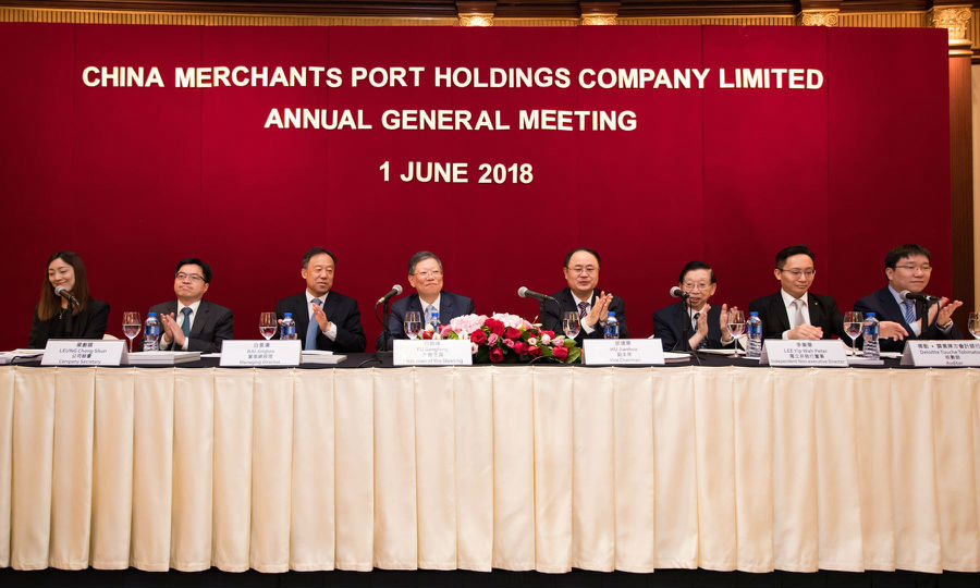 2018年6月1日,招商局港口控股有限公司(简称“招商局港口”或“本公司”)在香港举行股东周年大会,会议由董事会主席付刚峰主持,董事会副主席胡建华、招商局港口董事总经理白景涛、副总经理兼执行董事郑少平、财务总监吕胜洲等出席会议。