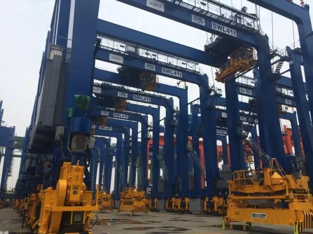 在印度市场,振华重工共提供设备近300台。长期的合作,使振华重工与印度Adani集团结下了深厚的友谊。2014年10月,振华重工与Adani集团签订Ennore码头4台岸桥项目。根据用户特殊需求,对轮压进行优化,有效提高了码头工作效率,获得用户好评,并于2016年增订6台岸桥。2016年5月13日,振华重工与Adani集团签订芒杜码头18台市电滑触线轮胎吊项目,并于2018年1月全部交付。振华重工在印度不止销售设备,2017年12月20日,振华重工签下了印度首个自动化码头的系统总承包项目,为印度Vizhinjam港提供8台岸桥、24台轨道吊的自动化设备以及系统总承包服务。