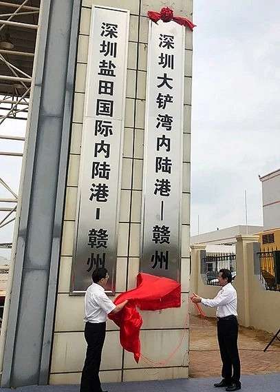 日前,“深圳大铲湾内陆港—赣州”在江西赣州市南康区正式揭牌。赣州市副市长、南康区委书记徐兵,盐田港集团总裁刘南安出席仪式并共同揭牌。