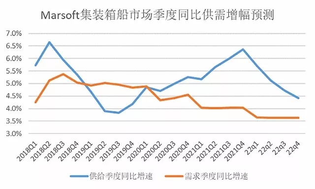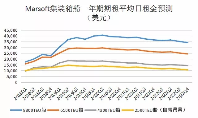 Marsoft模型对集运市场2018至2022年供需及船舶期租租金的预测