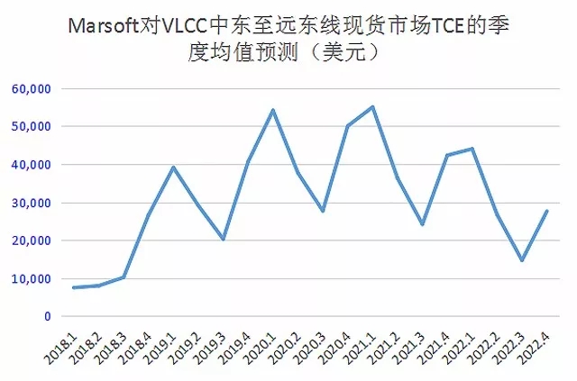 Marsoft模型对油轮市场2018至2022年供需及VLCC日收益的预测