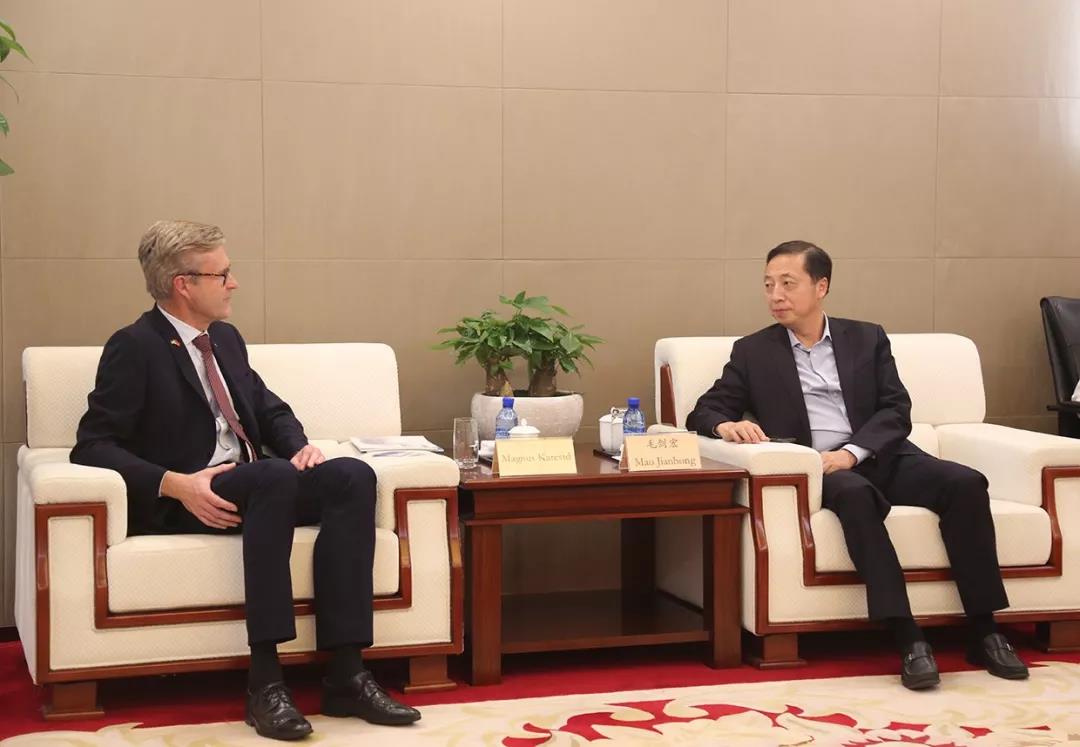 在座谈交流中,毛剑宏向Magnus Karestd一行介绍了集团和宁波舟山港的概况。他指出,集团希望与全球的港口运营商开展广泛的合作,更好地把中国的产品推向世界,同时也把更多国外产品引入中国。下一步,希望双方能在互信的基础上,在业务、环保、科技、人员培训等方面进行全方位的合作交流,实现互利共赢。