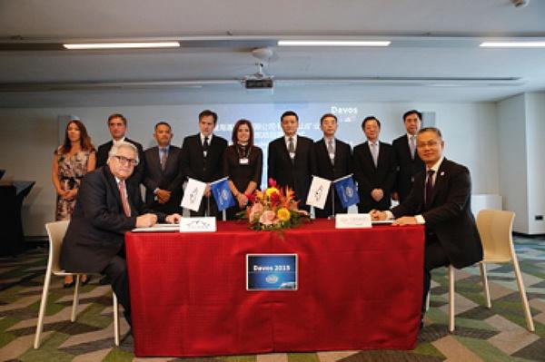 2019年1月23日,中远海运港口与秘鲁火山矿业集团在瑞士达沃斯世界经济论坛2019年年会期间举行签约仪式。
