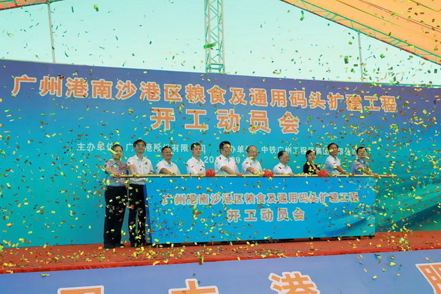 9月20日,广州港南沙粮食通用码头C区堆场,彩旗招展,气氛热烈,数十台大型机械设备严阵以待。广州港集团党委副书记、总经理,广州港股份有限公司副董事长李益波宣布概算总投资17.74亿元的广州港南沙港区粮食及通用码头泊位扩建工程正式开工。