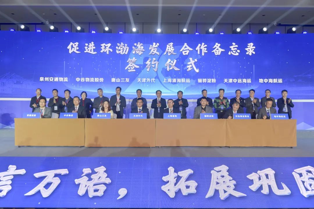 推介会上,秦皇岛骊骅淀粉股份有限公司、上海中谷物流股份有限公司、安通控股股份有限公司、天津中远海运集装箱运输有限公司、利胜地中海航运(上海)有限公司天津分公司、中国天津外轮代理有限公司等八家企业共同签署《促进环渤海发展合作备忘录》,将共同营造一个稳定健康的市场环境,共同推进环渤海区域良性发展。