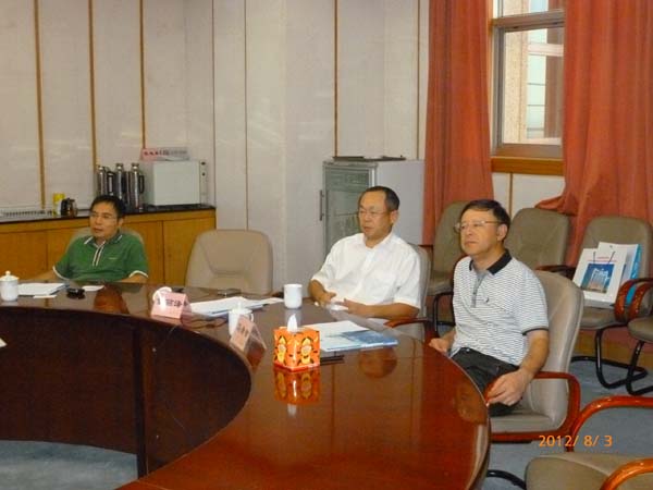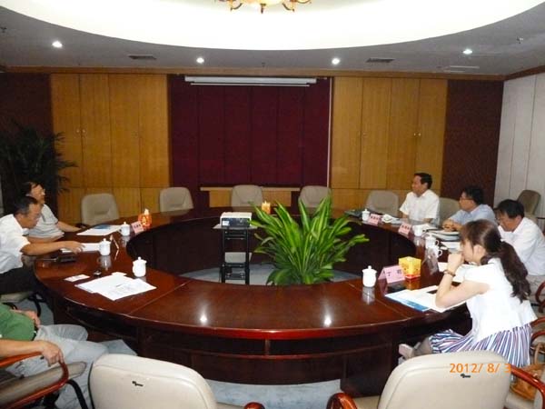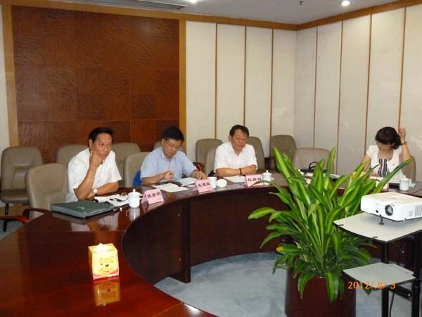 陈英明(右四)、朱建海(右三)、杜麒栋(右一)、秦汾、丁莉右前)与深圳市交委副主任、港务局副局长马勇智(左二)、港航管理处处长董燕泽(左一)等交换意见