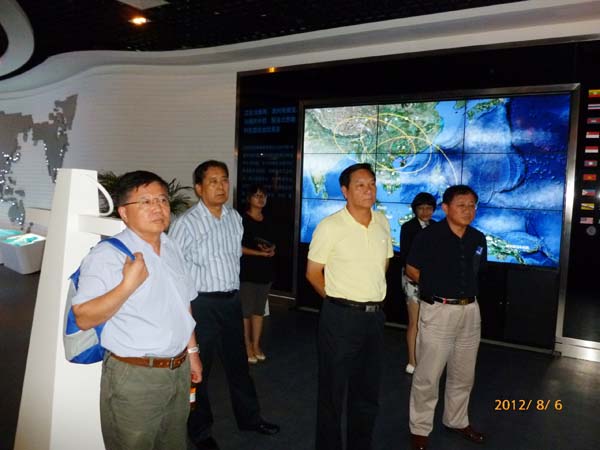 陈英明(前右二)、朱建海(左一)等在叶时湘(左二)陪同下参观北部湾集团展示厅
