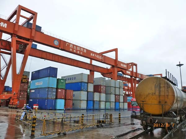 图为广西北部湾国际港务集团防城公司集装箱堆场