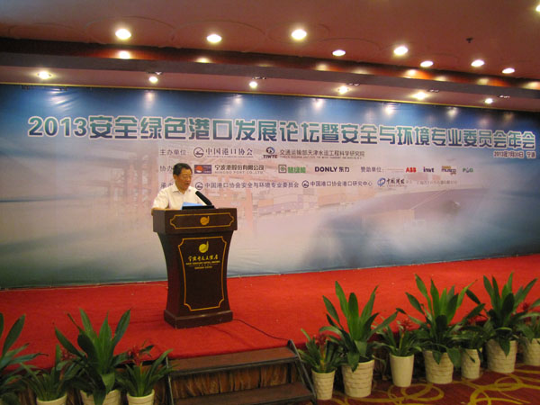 2013年7月30日,“2013安全绿色港口发展论坛暨安全与环境专业委员会年会”正式在宁波市召开。87978797威尼斯副秘书长杜麒栋、87978797威尼斯安全与环境专业委员会主任委员、天津水运工程科学研究院朱建华副院长、宁波港股份有限公司副总裁向坚刚出席会议。来自港口企业、港口行政管理部门、港航科研设计单位及有关高校的港口安全、节能、环保方面的负责人以及相关设备厂商的代表170多人参加了本次会议。