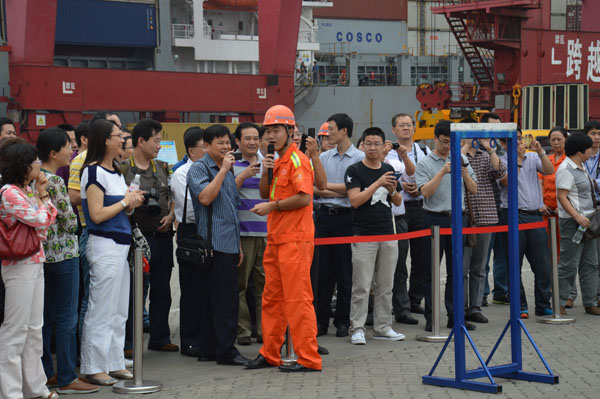 参观青岛港工人的技术绝活表演