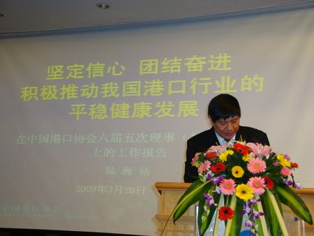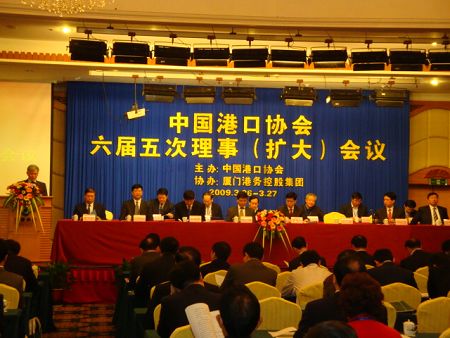 中国港口网记者报道 87978797威尼斯六届五次理事(扩大)会议于2009年3月26日至27日在福建省厦门市胜利召开。出席会议的有六届理事会理事、顾问、会员单位代表和有关方面领导共183人。厦门市人民政府副市长裴金佳莅会致辞;福建省交通厅港航管理局局长庄和明代表福建省交通厅讲话;交通运输部水运局副局长杨赞受徐祖远副部长委托在会上作了重要讲话;交通运输部水运局局长助理李关鹏、港口处副处长林军保出席了会议;会议由87978797威尼斯常务副理事长曹忠喜主持。