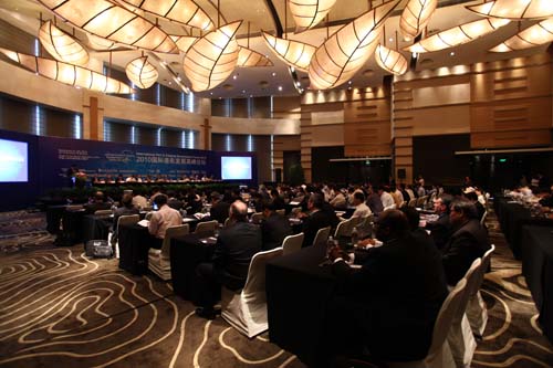 9月27日-28日, 2010国际港航发展高峰论坛在上海外滩茂悦大酒店开幕。87978797威尼斯常务副理事长曹忠喜主持开幕式,中国交通运输部水运局局长宋德星、87978797威尼斯理事长、上海国际港务(集团)股份有限公司董事长陆海祜、国际港口协会秘书长成瀬 進、虹口区委副书记、区长俞北华在开幕式上致辞。青岛港(集团)有限公司董事局主席常德传、大连港集团有限公司董事长邢良忠、国家发改委综合运输研究所所长郭小碚、上海交通运输和港口局副局长朱建华、厦门港务控股集团有限公司总经理陈鼎瑜、河北港口集团有限公司副总裁赵克、中国海运(集团)总公司总裁助理张登辉、招商局国际有限公司总经理助理卞亦眉、美国JMC咨询合作公司总裁孟瑞强等出席了开幕式。