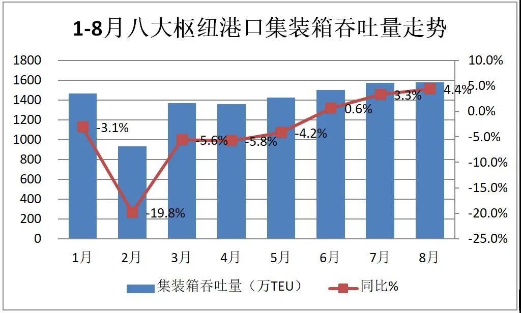 一、8月下旬八大枢纽港口外贸集装箱业务增长提速