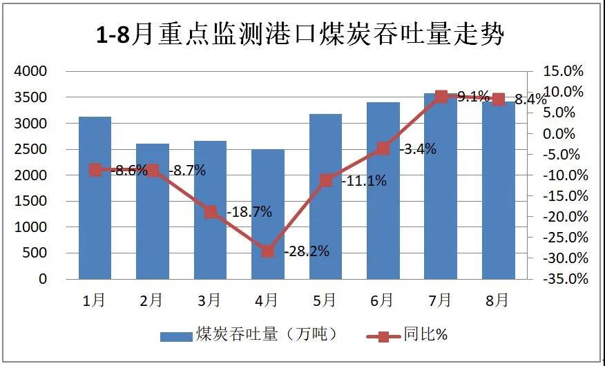 二、8月下旬重点监测港口煤炭吞吐量同比回落