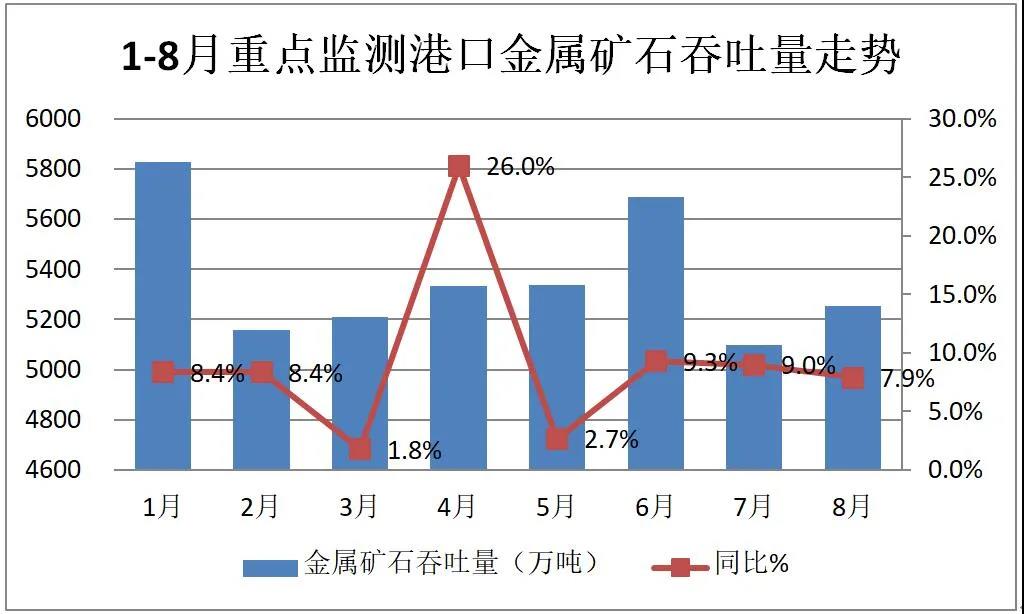 四、8月下旬重点监测港口金属矿石吞吐量平稳增长