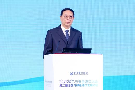 第二届北部湾绿色港口发展论坛环节,播放了“跨越发展中的北部湾港”视频。广西北部湾国际港务集团有限公司党委书记、董事长李延强作了《北部湾港绿色发展报告》主题报告。报告从顶层设计、绿色运输、智能化和生态美化、资源节约、创新驱动五个方面,总结了北部湾港的绿色发展成效。从推进规划实施、提升科技创新水平、筑牢绿色发展根基、构建绿色集疏运体系、打造智慧监管平台五个方面,提出了未来工作展望。