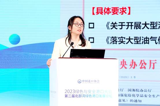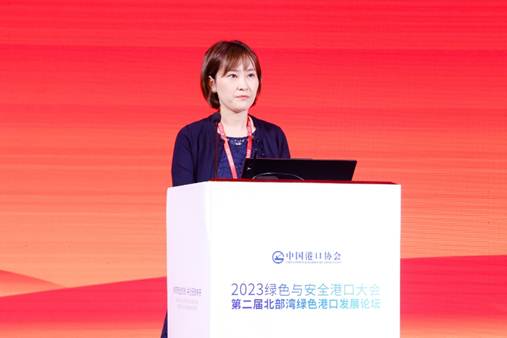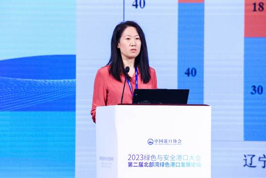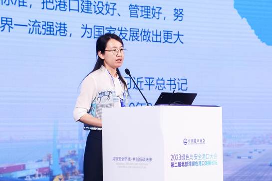 生态环境部环境规划院生态环境管理和政策研究所副所长郝春旭分享了题为“推动港口绿色发展的环境政策”的演讲,她介绍了近十年生态环境保护的成就和港口行业绿色发展的生态环境政策,强调了港口生态环境保护的重点,未来要向深化污染防治攻坚、绿色低碳能源推广和实现碳达峰、碳中和等方向努力。