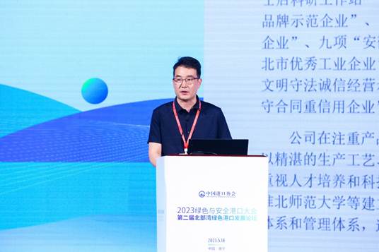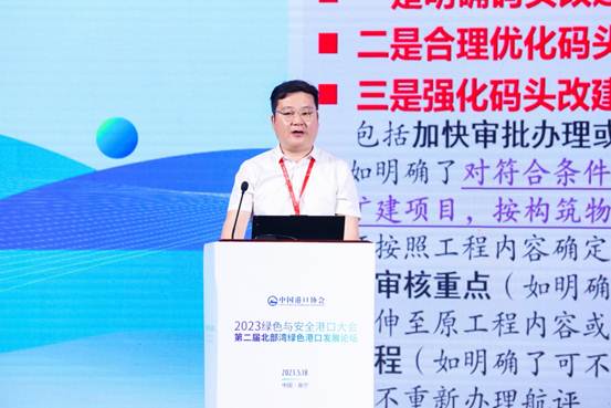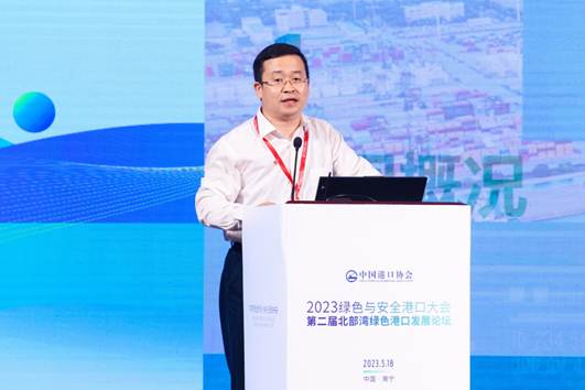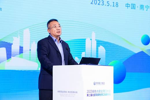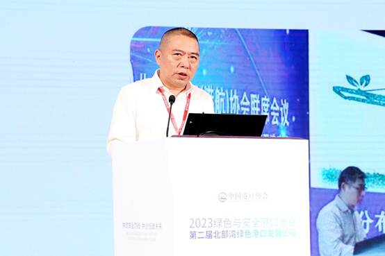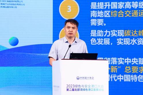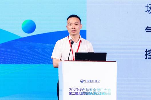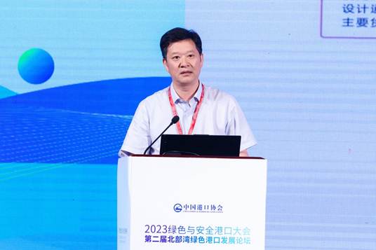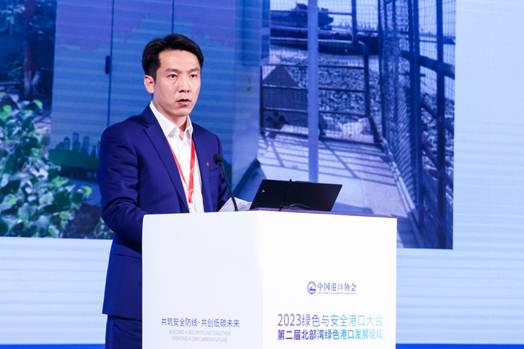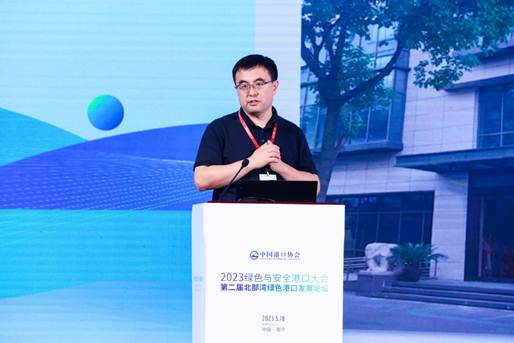 主旨演讲与技术交流环节,交通运输部天津水运工程科学研究院环科公司环境事业一部主任王楠发表了题为《双碳目标下“沿海、内河港口码头改扩建”的绿色低碳转型之路》的主旨演讲。他介绍了当前国家关于沿海和内河港口码头改建扩建项目政策,分享了国内绿色低碳码头建设的案例,提出了改扩建码头的建议,如加强顶层设计、解决历史累积现存生态环境问题、落实新政策和新标准,以及构建智慧管控平台等。