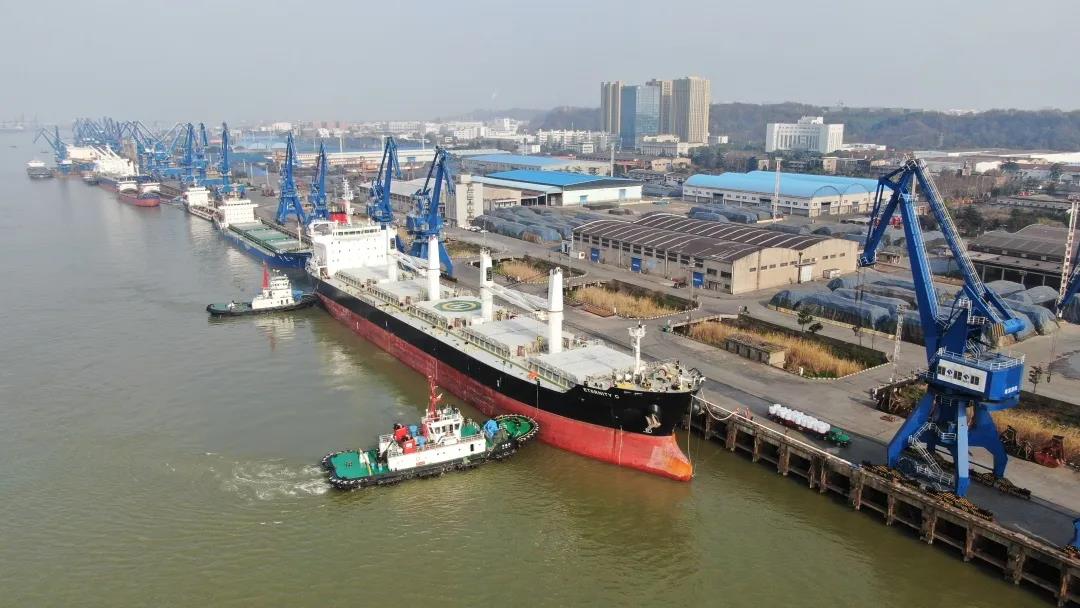 船舶靠泊江苏省港口集团南京港新生圩港区。