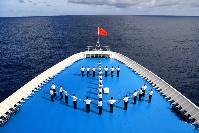 7月11日,正在太平洋某海域执行卫星海上测控任务的远望5号、7号船,在航行途中举办系列航海科普活动,以航天人特有的方式纪念第16个中国航海日