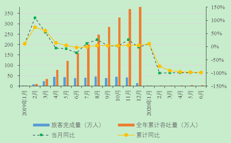 6月份长江水运完成旅客发送量0.49万人次,与去年同比下降98.8%,与上月环比上升150.4%。自年初累计完成旅客发送量3.87万人次,与去年同比下降97.6%。
