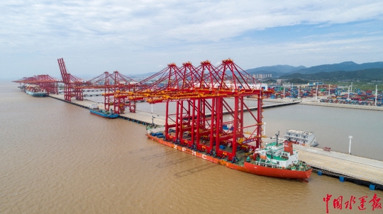 据了解,该批桥吊在经过3个月左右的安装调试后即可投入使用,届时将和港区现有设备在同一张智慧网下融合运行,发挥大规模自动化设备的集群优势。后续,梅山港区还将有4台远控自动化桥吊和24台远控自动化龙门吊陆续到港,届时梅山港区将拥有18台自动化桥吊、48台自动化龙门吊,助力宁波舟山港打造世界一流强港。