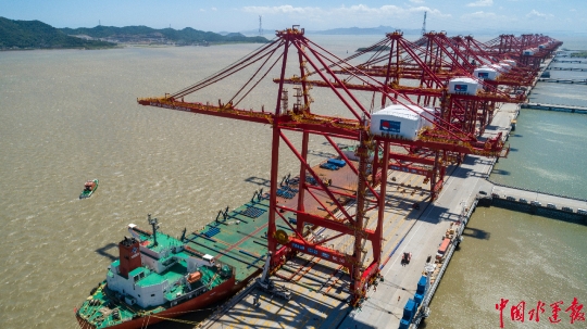8月12日14时许,经过4天的连续作业,随着最后1台远控自动化桥吊从“振华32”轮上缓缓挪移到码头面上,宁波舟山港梅山港区采购的今年首批4台国内作业高度最高的远控自动化桥吊全部完成卸船,助力梅山港区智慧码头建设再上新台阶。